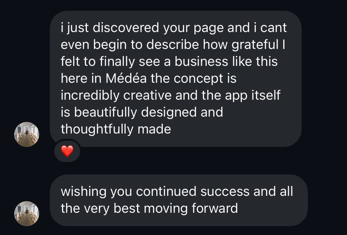 I just discovered this and I can't begin to describe how grateful I felt to finally see a business like this here in Médéa. The concept is incredibly creative and the app itself is beautifully designed and thoughtfully made.